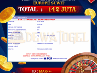 DEWATOGEL JACKPOT LIVE CASINO DI EUROPE SUWIT Rp 142.000.000,- LUNAS