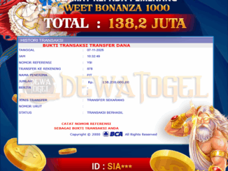 DEWATOGEL JACKPOT SLOT DI SWEET BONANZA 1000 Rp 138.250.000,- LUNAS