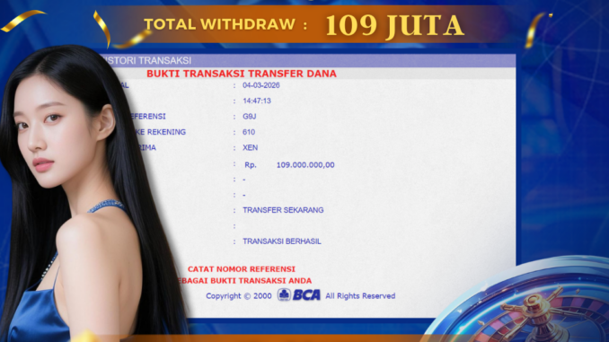DEWATOGEL mengucapkan selamat kepada user id : JON*** yang telah berhasil mendapatkan jackpot pada permainan LIVE CASINO DI 24D SPIN. Kemenangan sebesar Rp 109.000.000,-. telah dibayarkan LUNAS oleh pihak dewatogel kepada pemilik user id setelah yang bersangkutan mengisi formulir withdraw. Proses pencairan dana berlangsung sangat cepat hanya dalam waktu 5-10 menit sudah berada dalam rekening pemilik user id. Bukti transfer yang dapat anda lihat adalah bukti SAH / VALID yang langsung di dapatkan melalui bukti transaksi dari Bank yang digunakan untuk pengiriman dana pada rekening pemilik user id. Terima kasih kami sampaikan kepada para pengguna setia DEWATOGEL yang telah menggunakan situs kami, sebagai Bandar Terpercaya yang pastinya membayar semua kemenangan member hingga lunas. Apakah DEWATOGEL PENIPU ? Reputasi “DEWATOGEL TERPERCAYA” sudah sangat melekat. puluhan hingga ratusan ribu pengguna setia DEWATOGEL tetap menggunakan situs terbesar dan terbaik di Indonesia ini. Hapus rasa was-was dan khawatir anda, kemenangan anda berapapun PASTI dibayarkan hingga lunas.